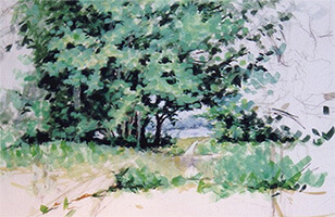 野原や木立の寄り添う川辺、森の中などで写生を積みながら、自然と心の対話を大切にした日々。フェルメールが彼の作品の中で、時の流れを止め、自然や人々の営みを永遠の中に封じ込めたような抽象画を色彩の組み合わせを持って表現してみたいと思った時期だ。